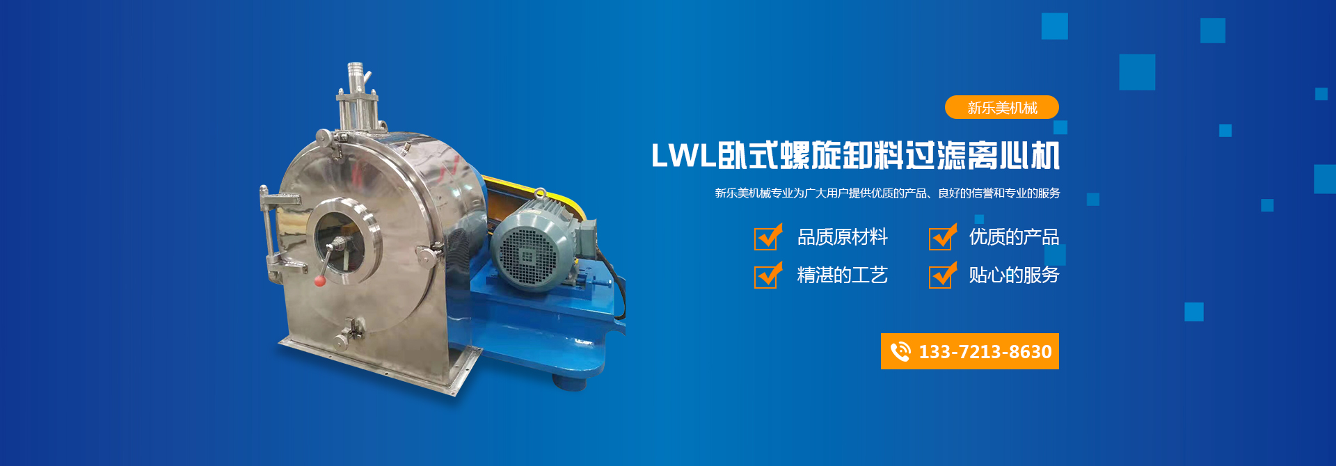 張家港新樂美機械有限公司擁有完善的生產設備和嚴格的出廠檢驗制度,公司主要生產:平板離心機、吊袋離心機、臥螺離心機、刮刀離心機、全自動離心機等。